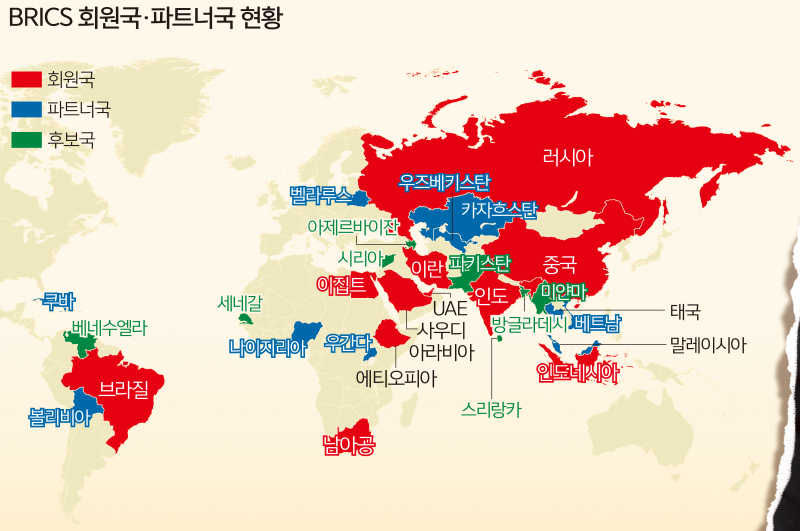 | 확장 현황 | 2023년 이후 이집트, 에티오피아, 인도네시아, 이란, 사우디아라비아, UAE 등 다수 국가 가입 / 베트남·벨라루스 등 파트너국 합류 |