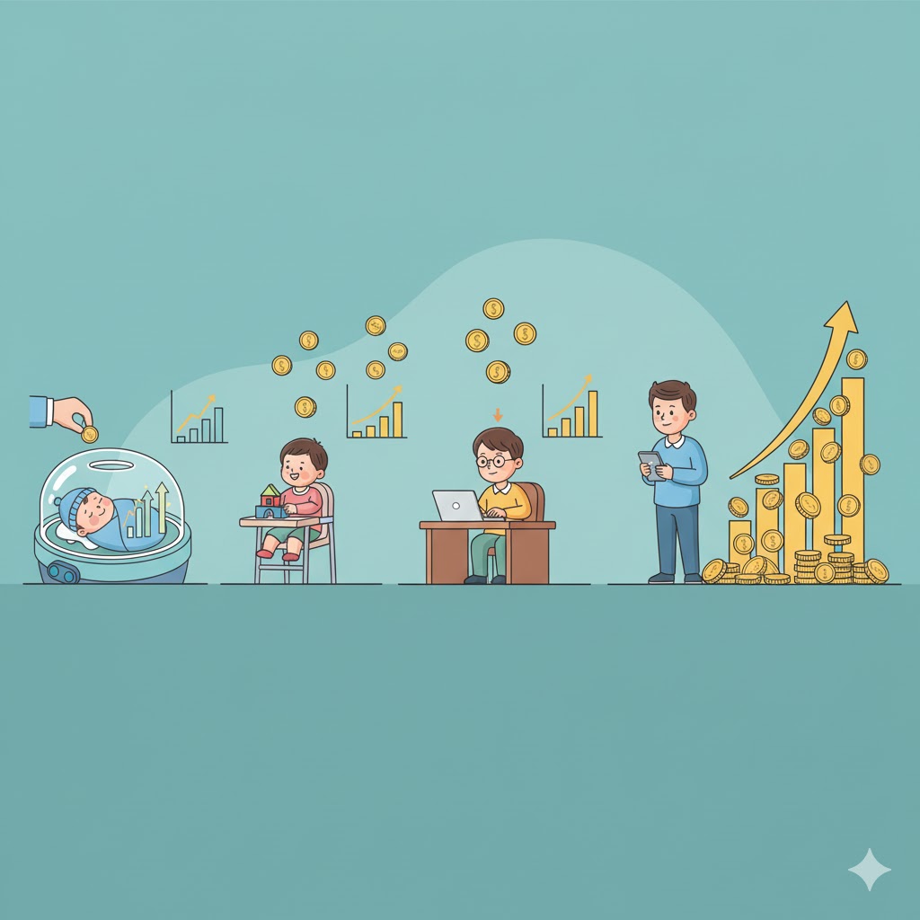 아이가 태어나는 순간부터 매월 소액을 꾸준히 투자하여 장기적으로 경제적 기반을 마련해 주는 것은 ‘시간의 힘’을 활용하는 가장 현명한 부모의 선택입니다. 초기 목돈 증여 없이, 월 5~10만 원의 소액으로 시작하는 장기 적립식 주식 투자 전략을 구체적으로 안내드립니다.