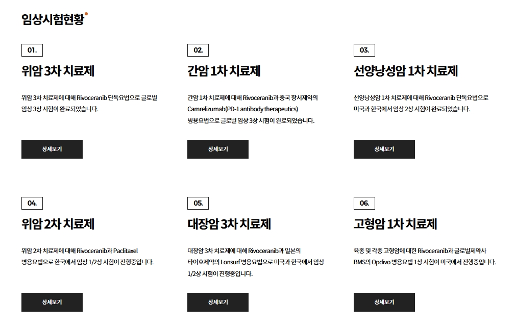 - 담관암 치료제 '리라푸그라티닙': FDA로부터 [혁신 신약 지정]을 받은 물질로, 임상 2상 결과가 긍정적이라 현재 Pre-NDA 미팅을 신청한 상태입니다. 리보세라닙이 난항을 겪는 상황에서 새로운 상업화 파이프라인을 확보하려는 그룹의 전략적 행보로 보입니다.