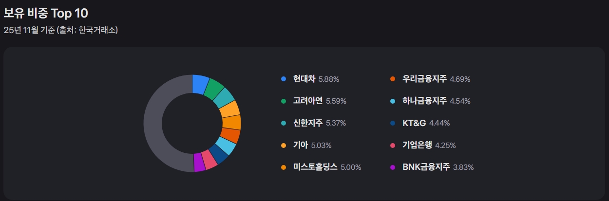 | 주요 편입 종목 | 금융지주, 통신, 보험, 철강 등 (총주주환원 우수 기업) | 금융지주, 보험 등 감액 배당 활용 기업 (금융주 비중 높음) |