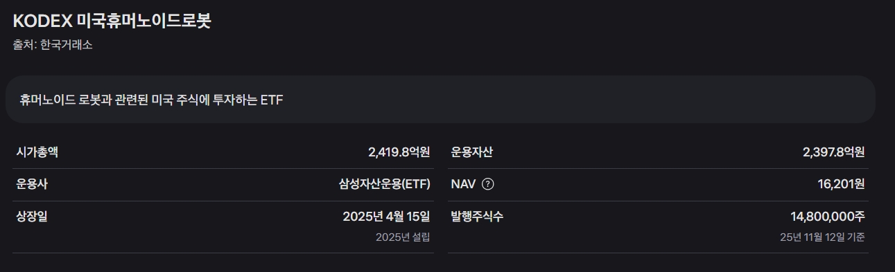 이 ETF는 '휴머노이드 로봇'이라는 미래 산업의 씨앗을 심는 행위와 같습니다. 꾸준히 모니터링하며 성장 여부를 지켜보시길 바랍니다!