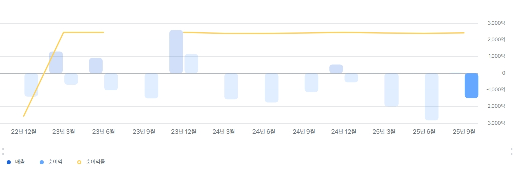 - 영업이익 추이: R&D(연구개발) 비용과 상용화 초기 마케팅 비용이 지속적으로 투입되고 있어, 아직 '돈을 버는 구조'로 완전히 돌아서진 못했습니다.
