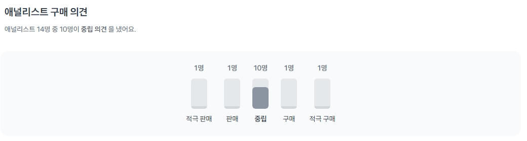 현재 주가는 미래의 성장을 상당히 많이 당겨온 상태입니다. 애널리스트 대다수가 '중립'을 외치는 데는 그만한 이유가 있습니다.