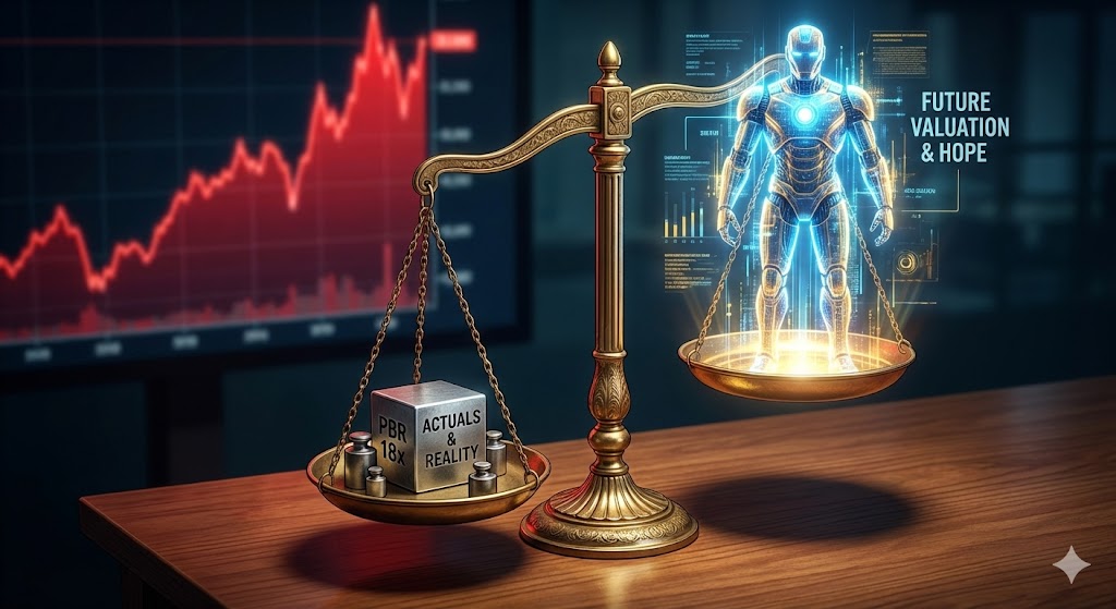 - PBR (주가순자산비율): 18.0배. 일반적인 제조업이 1~2배, 고성장 테크 기업도 5~10배 수준인데, 18배는 상당히 고평가된 영역입니다. 미래의 기대수익을 몇 년치나 앞당겨서 반영하고 있다는 뜻입니다.