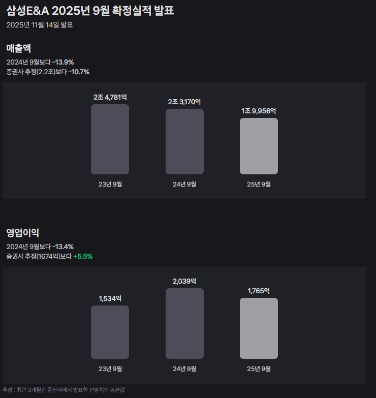 - 그룹사의 CAPEX 축소: 삼성전자, 삼성SDI 등 주요 계열사가 불경기를 이유로 투자를 대폭 줄였습니다. (집안 일감 감소)