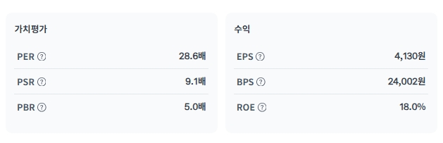 출처 토스증권 매출 성장세전년비 +36.9%부채비율31.79% (안정적)이자보상배율4,214%3. 주가 및 밸류에이션: 현재 가격의 적정성