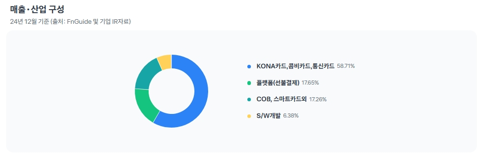 출처 토스증권 - • 결제 플랫폼: 자체 개발한 IC칩 운영체제를 기반으로 금융, 통신용 스마트카드를 제조하며 수익 구조를 고도화하고 있습니다.