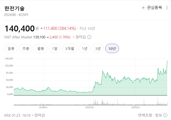 항목 내용 기업명 한전기술 시가총액 약 5조 3,663억 원 주요 변곡점 2024 체코 원전 우선협상대상자 선정