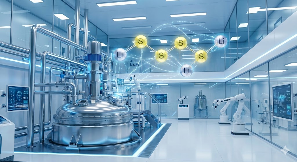 - 황화리튬(Li2S): 전고체 배터리 중 가장 유망한 황화물계 전해질의 핵심 원료입니다. 세계 최초 연속식 공법 적용으로 압도적인 원가 경쟁력을 확보했습니다.