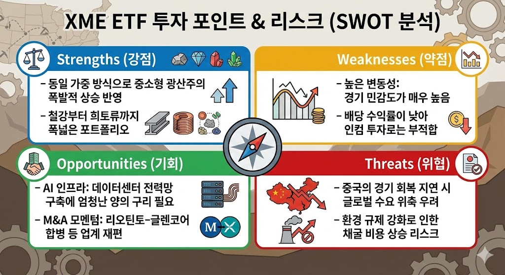 그 중심에서 미국 내 금속 및 광산업체에 동일 가중으로 투자하는 XME는 단순한 원자재 투자를 넘어 미래 산업의 '쌀'에 투자하는 가장 효과적인 수단이 되고 있습니다.