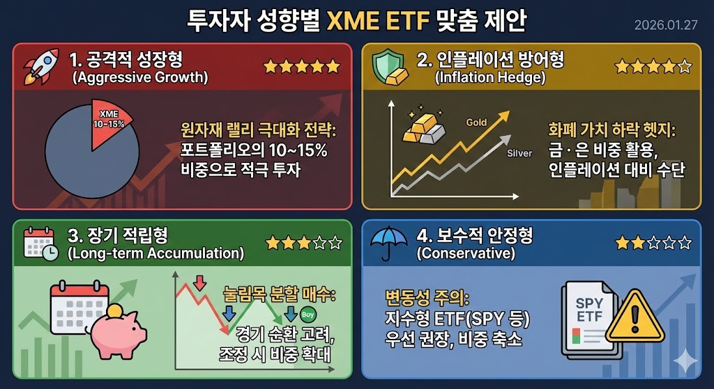 | 보수적 안정형 | ★★☆☆☆ | 지수형 ETF(SPY 등) 우선 권장 |