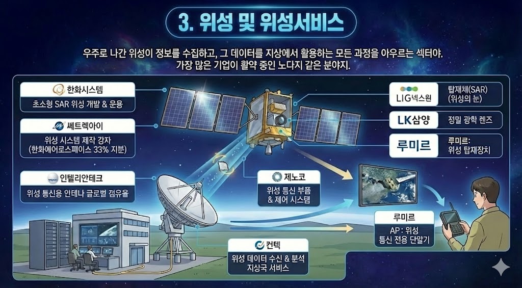 | 쎄트렉아이 | 위성 시스템 제작 강자 (한화에어로스페이스 지분 보유) |