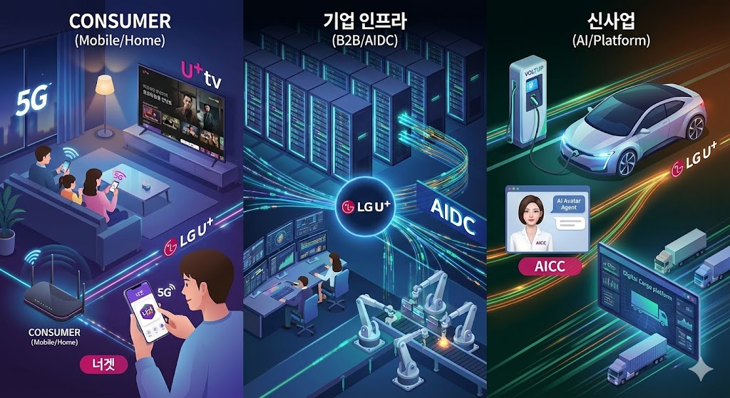 - 신사업 부문 (AI/Platform): AI 기반 컨택센터(AICC)와 전기차 충전 플랫폼 '볼트업'을 통해 수익 구조를 다변화하고 있습니다.